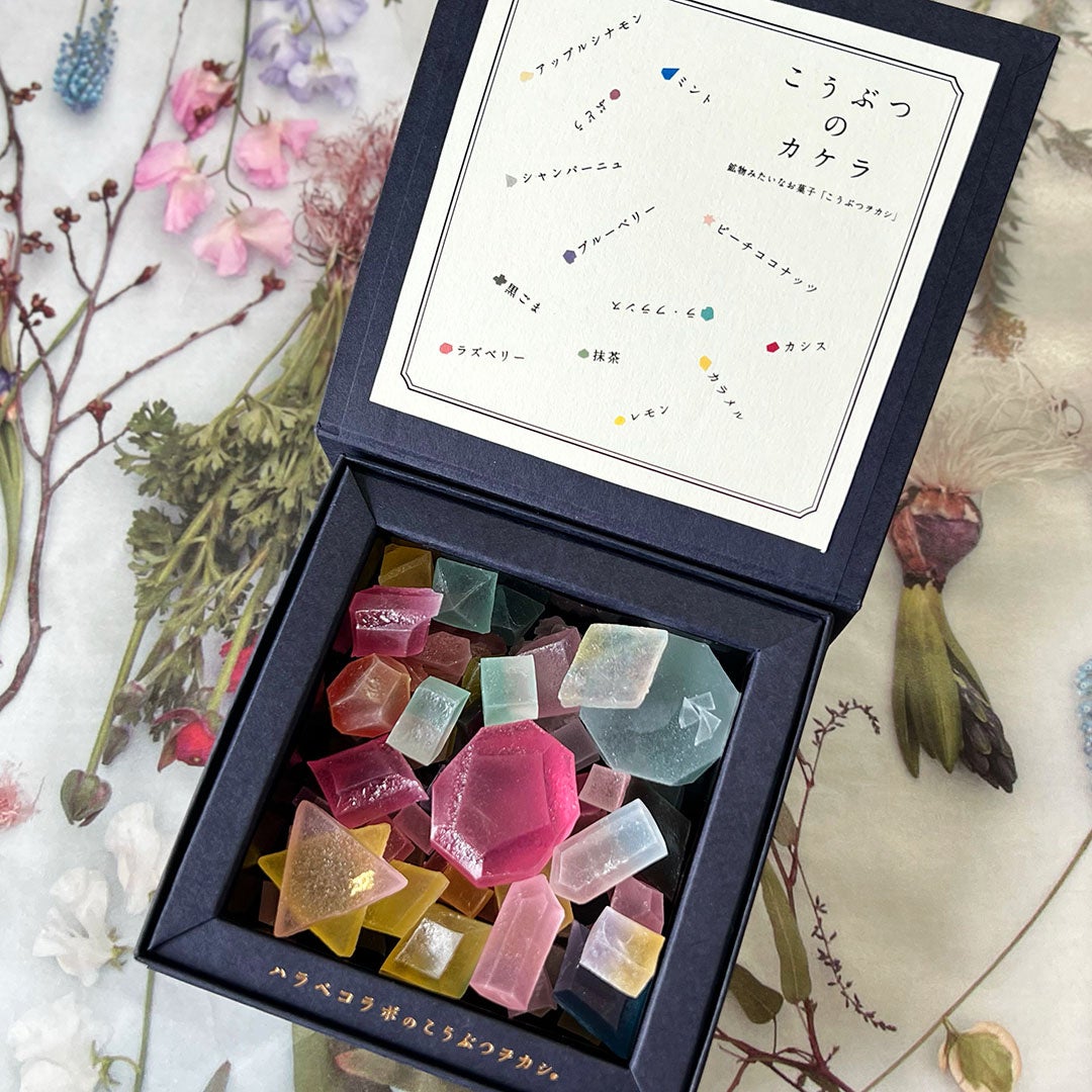 こうぶつヲカシのカケラを集めたBox入り。夜空に星屑を並べたようなこうぶつヲカシのかけらたちをご用意いたしました。様々な形や13種類のお色味がランダムにお楽しみいただける作品となっております。どんな組み合わせのものが入るのかご指定はいただけませんが、宝物探しをするような気分になっていただけたらと思います。どうぞお楽しみにお待ちくださいませ。