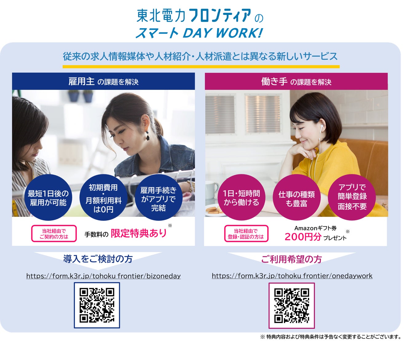 「東北電力フロンティアのスマートDAYWORK!」の開始について~単日・短時間雇用マッチングサービスによる新たな働き方をご提供~