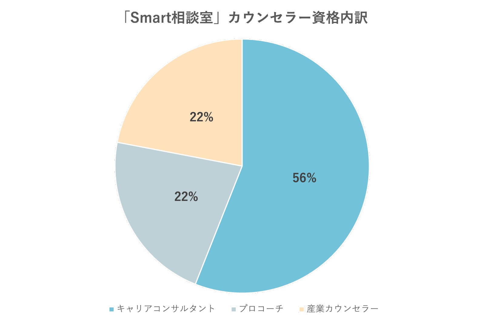 Smart相談室がサービスを開始した当初、カウンセラー数は4名でした。今では150名を越えるカウンセラーの方にご参加いただき、日々、相談者様の声に応えています。「Smart相談室」は、何を相談しても良いサービスです。相談者様がカウンセラーを選び、何回でもご相談いただけます。結果として相談者様は、より多くのカウンセラーの中からご自分が良いと思うカウンセラーを選べることも魅力の一つです。そんなニーズに対応すべく、様々な背景をお持ちのカウンセラーの皆様にご協力をいただいており、全員が対人支援に関する有資格者の方です。今回、その1つの項目として当該資格保有者の割合を集計いたしました。(*1)