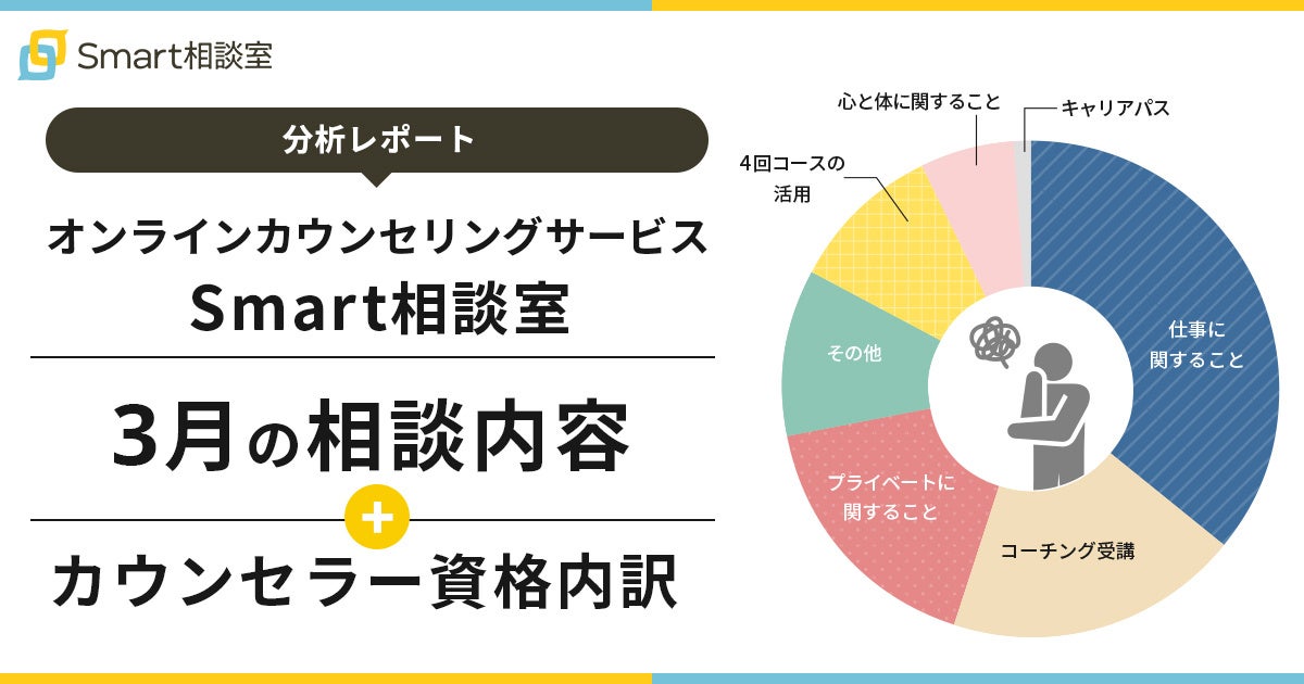 【分析レポート】カウンセラー資格内訳および、オンラインカウンセリングサービス「Smart相談室」の3月の相談内容内訳