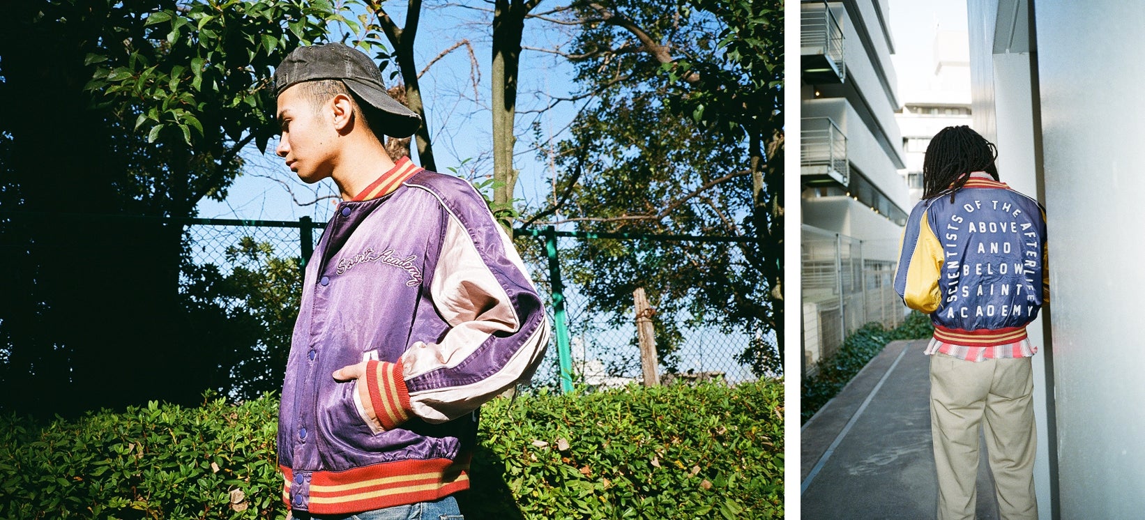 SHERMER ACADEMYとのコラボレーションアイテムでは、ブランド初となるスカジャンを発売。両ブランドのデザイナーによる本物の古着のような風合いの加工に徹底的にこだわった逸品。