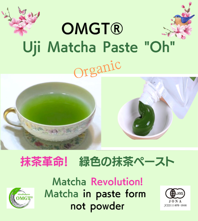 そこで、抹茶についても、面倒くさい手順や作法なしで、その栄養を簡単に取り入れるために、抹茶の課題を解決したのが、OMGT🄬 の宇治抹茶ペーストだ。