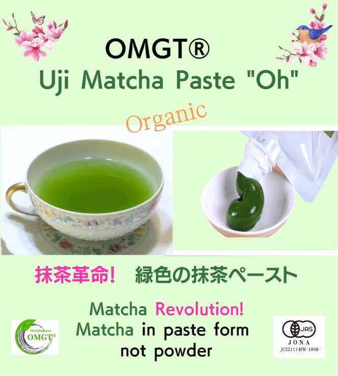 このOMGT🄬の宇治抹茶ペーストは、抹茶をたてることもできれば、抹茶ラテ、抹茶サイダー等の飲料も簡単に作れる。無着色で緑色の抹茶パン、抹茶アイススクリーム、抹茶ソフトクリーム、抹茶カステラ、抹茶クッキー、抹茶おはぎ等々の抹茶和洋菓子や抹茶料理が作れる。