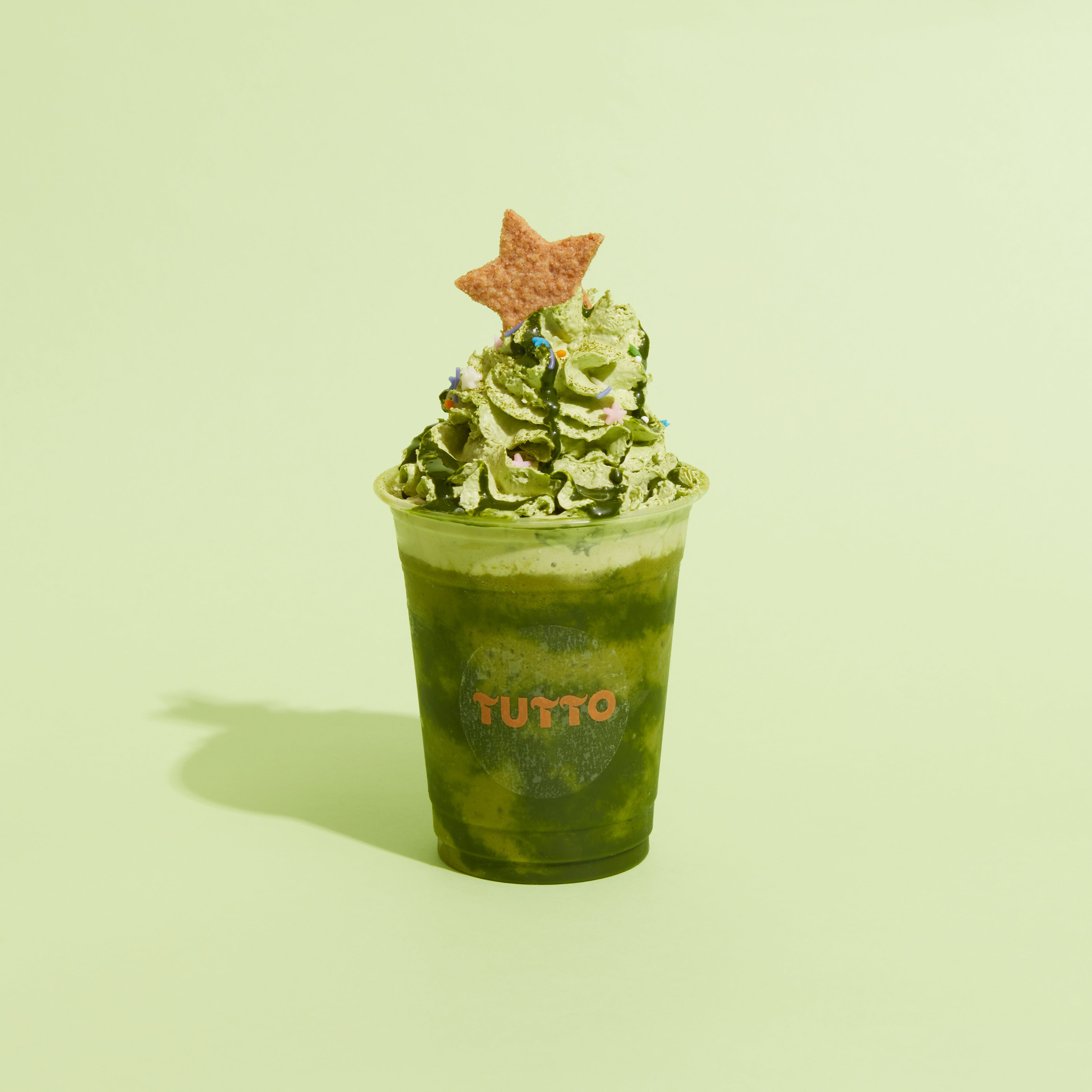 オーガニック抹茶をたっぷり使用した抹茶ペースト、抹茶豆乳クリームをトッピング。更に濃厚な抹茶ベラートに仕上がりました。カラフルなヴィーガンカラースプレーがビジュアルにも食感にも楽しんでいただけます!