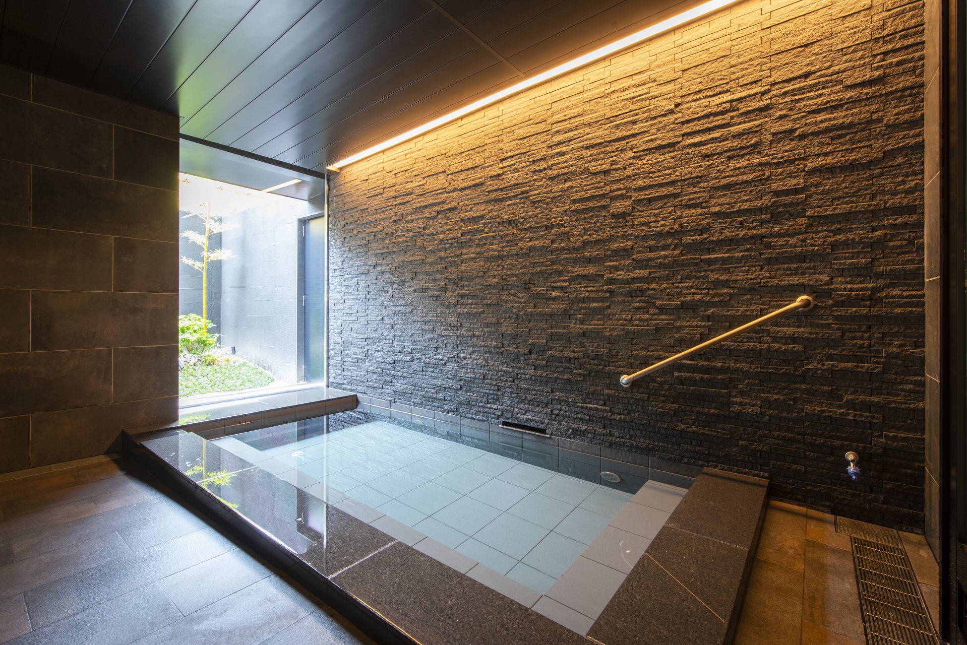 大浴場は、男女ともに中庭に面した温泉効能のある半露天風呂をご用意しています。
