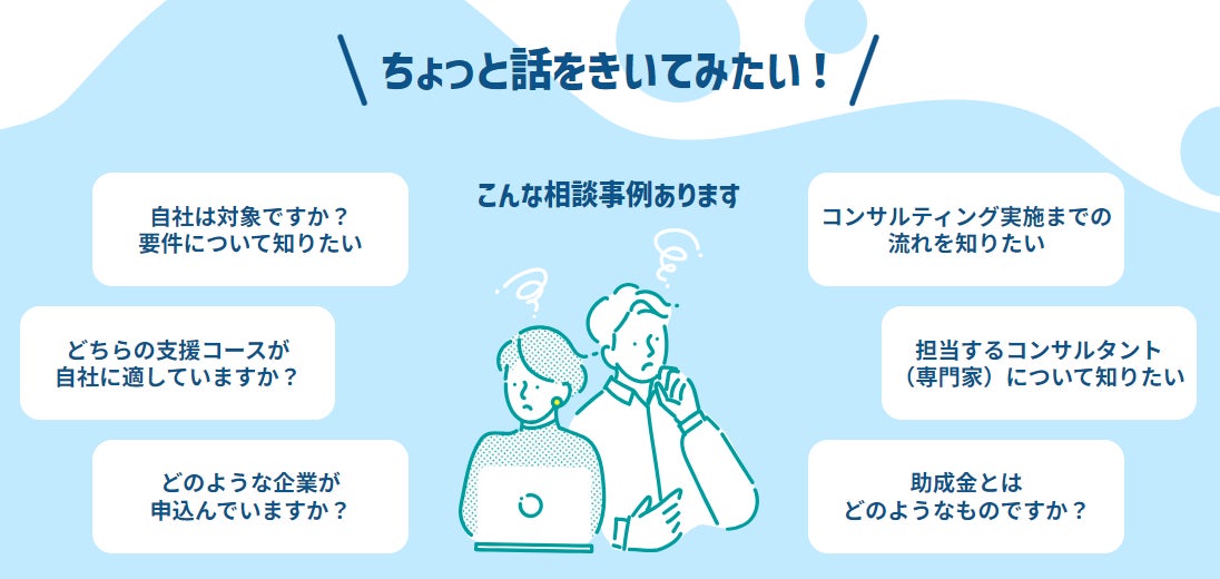 「事業について気になることがある」、「少し話を聞いてみたい」という方は、下記ボタンよりお気軽にご相談ください。