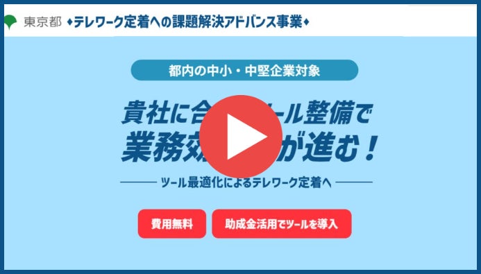 助成金を活用!自社に最適な便利なツールで業務効率化をしませんか?東京都「テレワーク定着への課題解決アドバンス事業」事業紹介動画です。ナレーション付きでお届けします。