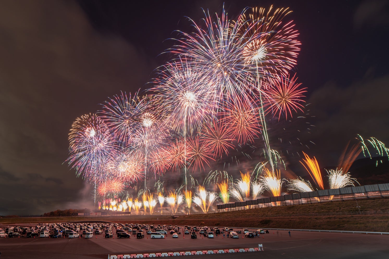 本イベントの魅力のひとつは、日本最大級となるワイド約1.5kmの広大な敷地から約8,000発が打ち揚がる花火のスケール感です。花火と客席の距離も近く、視界いっぱいに打ち揚がることで、花火音や花火の匂いとともにまるで花火に包まれるような感覚を味わうことができます。最大1尺玉の大輪の花火は、都心では体験できない迫力です。花火の製作・打揚は、昨年同様、静岡県が誇る花火企業イケブンをはじめ、国内競技花火大会で21回の内閣総理大臣賞を獲得した日本最高峰の野村花火工業、ぎおん柏崎まつり海の大花火大会や片貝まつりの片貝煙火工業が集結。また、希少なスーパーカー等が出走するパレードランや、車と並走して打ち揚がる花火など、花火とモータースポーツの競演ならではのエキサイティングな仕掛けを用意しています。