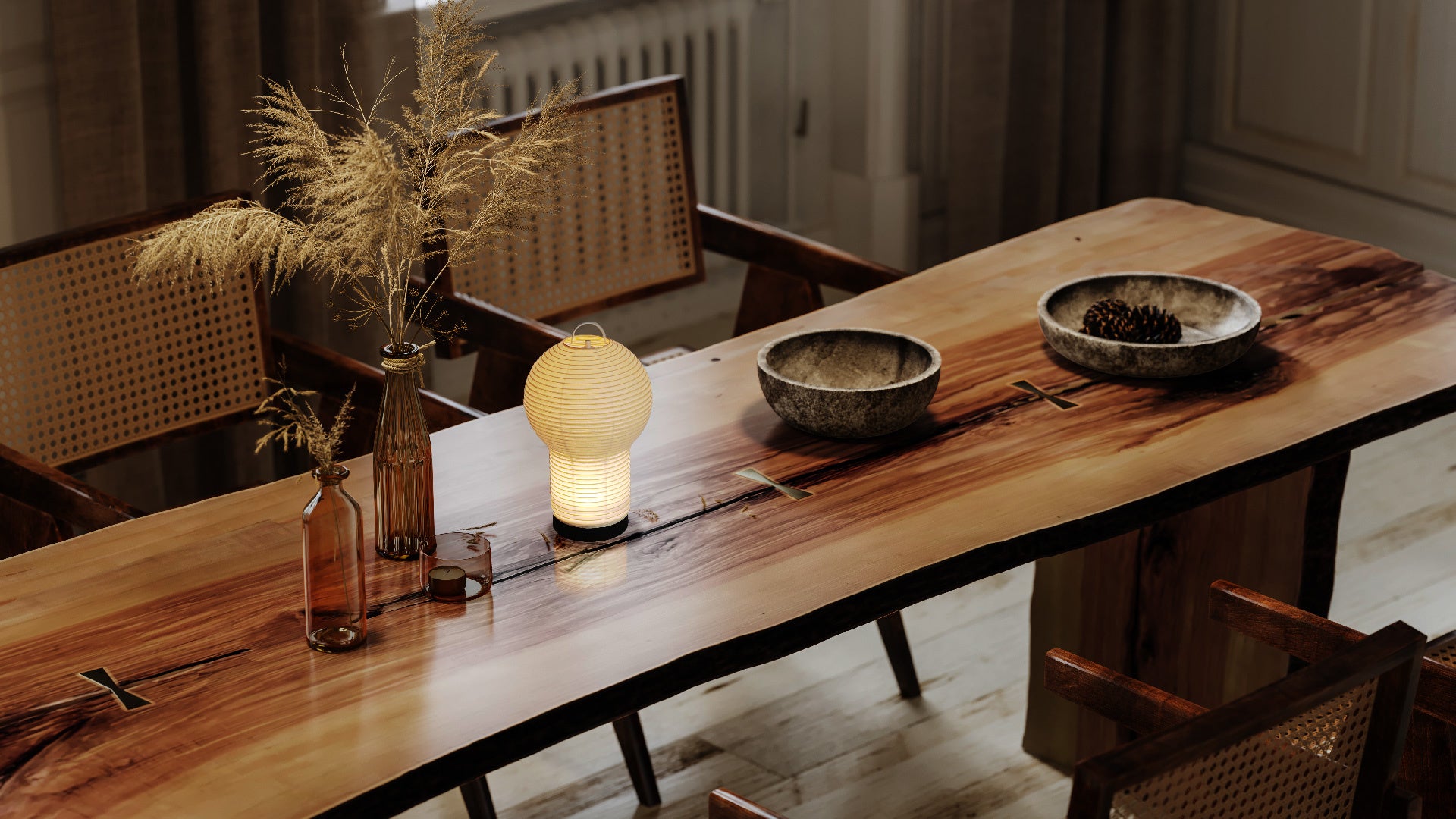 充電式のポータブルランプなので、好きな場所に持ち運び可能です。コードレス仕様のため、ダイニングテーブルで食事の際にもコードが邪魔にならず、美しく食卓を演出できます。やわらかな暖色の光が食べ物をより美味しく演出します。晩酌時にも活躍します。