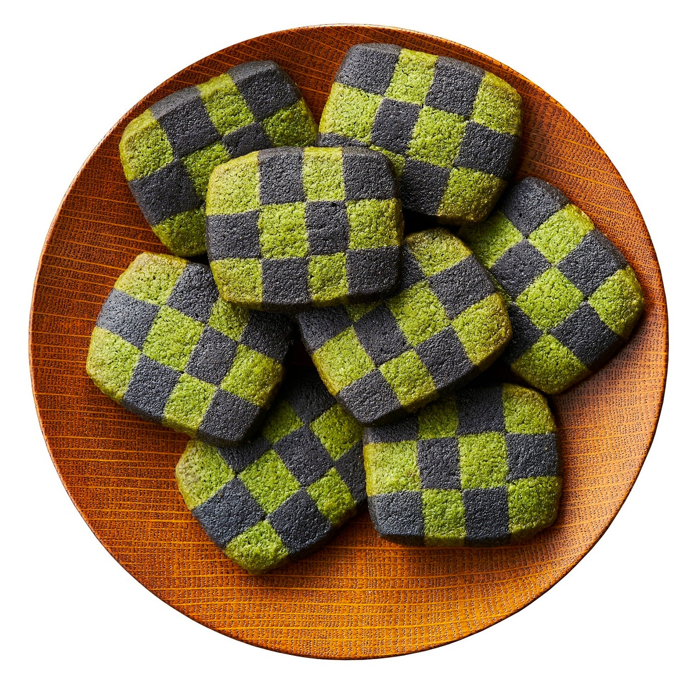【内容】京都府産宇治抹茶を使用した生地と、ココア生地の2種類の生地を使用したクッキー。1枚で宇治抹茶とココアのビターなハーモニーが楽しめます。※ココアパウダー1.4%使用