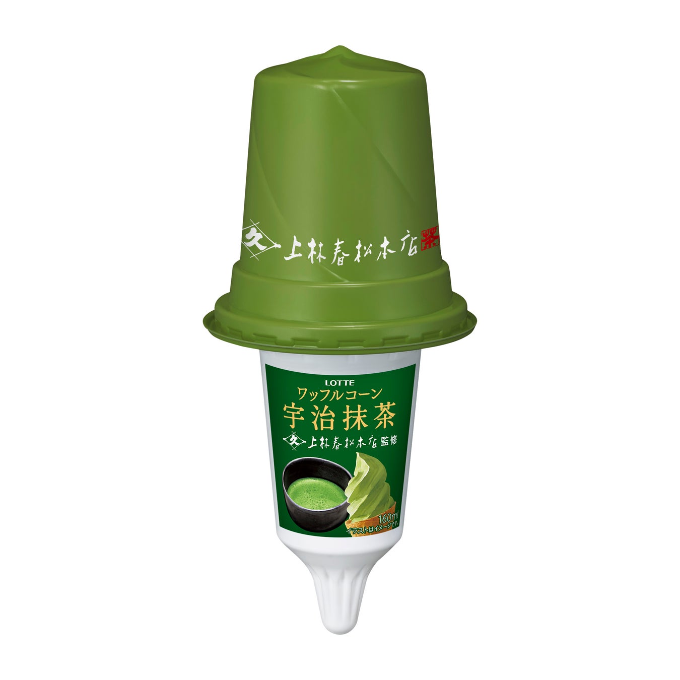 【内容】上林春松本店監修の宇治抹茶の旨みを楽しめる抹茶アイスに、小麦粉の一部に全粒粉を使用した香ばしいシュガーコーンを合わせた、ザクっとまろやか食感のワッフルコーンアイス。宇治抹茶アイスの旨味と香ばしいコーンが相性抜群です。