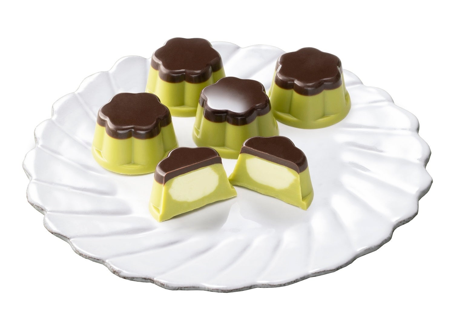 【内容】まったりなめらかな口どけが特徴のプリン形状のチョコレート。京都府産宇治抹茶を使用した抹茶チョコと、黒糖チョコのダブルチョコ仕立てです。※黒糖香料使用