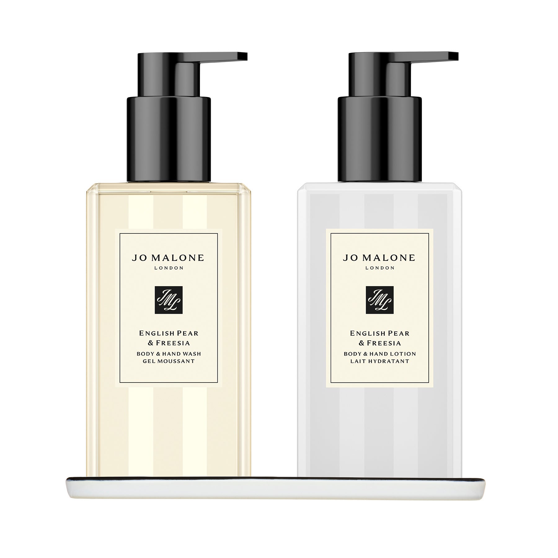 この心地よいフルーティーな香りが、エレガントな限定デザインボトルのコロン、愛らしいデコレーションが施されたホーム キャンドル、そして、ソフトに香るボディパウダーが、鏡面仕上げのシックなコンパクトで、外出先でも使いやすいブラシ付きで登場。ほのかなきらめきを纏って、肌をシルクのようになめらかな印象に。 また、イングリッシュ ペアー & フリージアのコロンやバス & ボディアイテムのミニサイズがセットになった 旅のお供に持ち運び便利なトラベル コレクションも登場します。