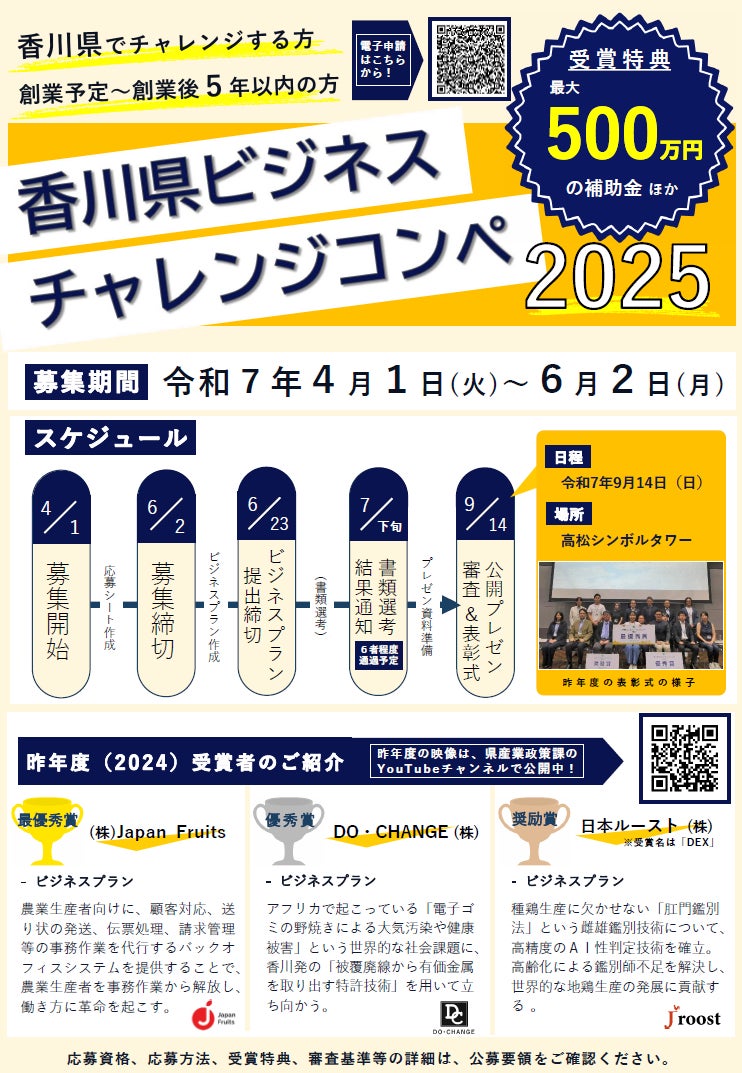 「香川県ビジネスチャレンジコンペ2025」募集開始!!