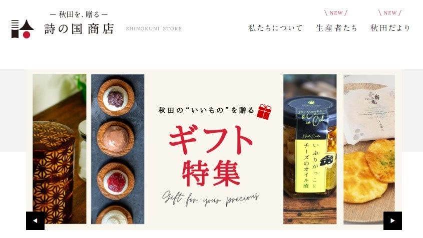 厳選された秋田の”いいもの”を贈るECサイト「詩の国商店」。こだわりを持って作られたものには必ず、生産者の想いがある。そんな生産者のものづくりに対する想いも一緒に届けるショッピングサイトです。サイト内ページ”生産者たち”(https://shinokuni-store.com/artisan/)には一押し生産者のインタビュー記事も載せてます。