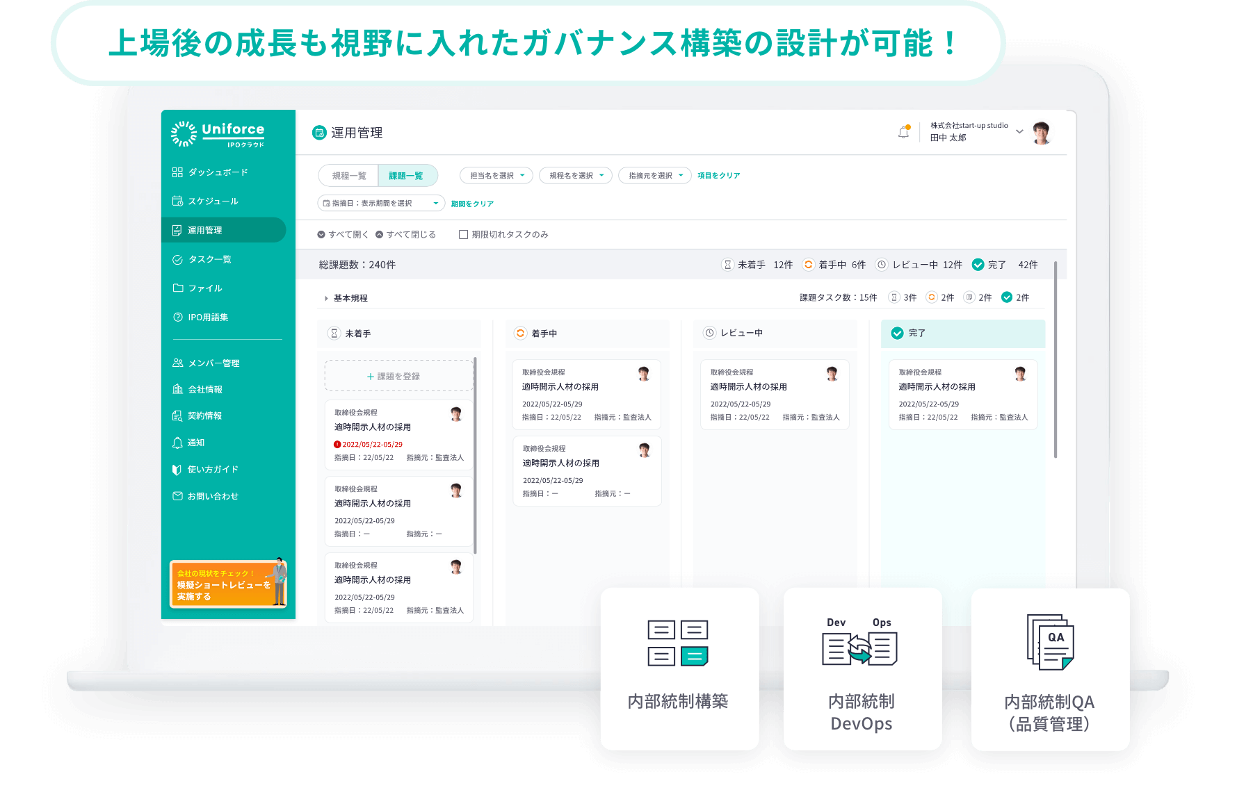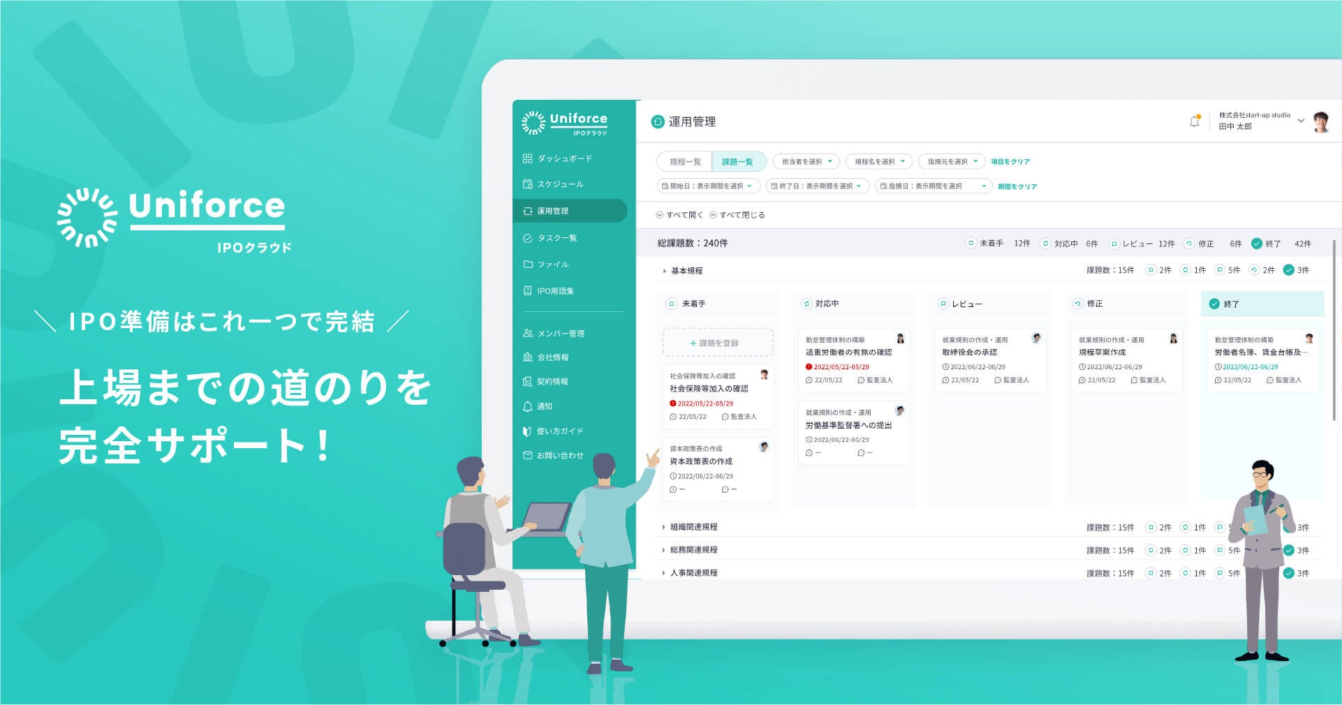 IPO準備業務の課題を解決し「上場までの道のりを完全サポート」するためのUniforceの機能をご紹介します。