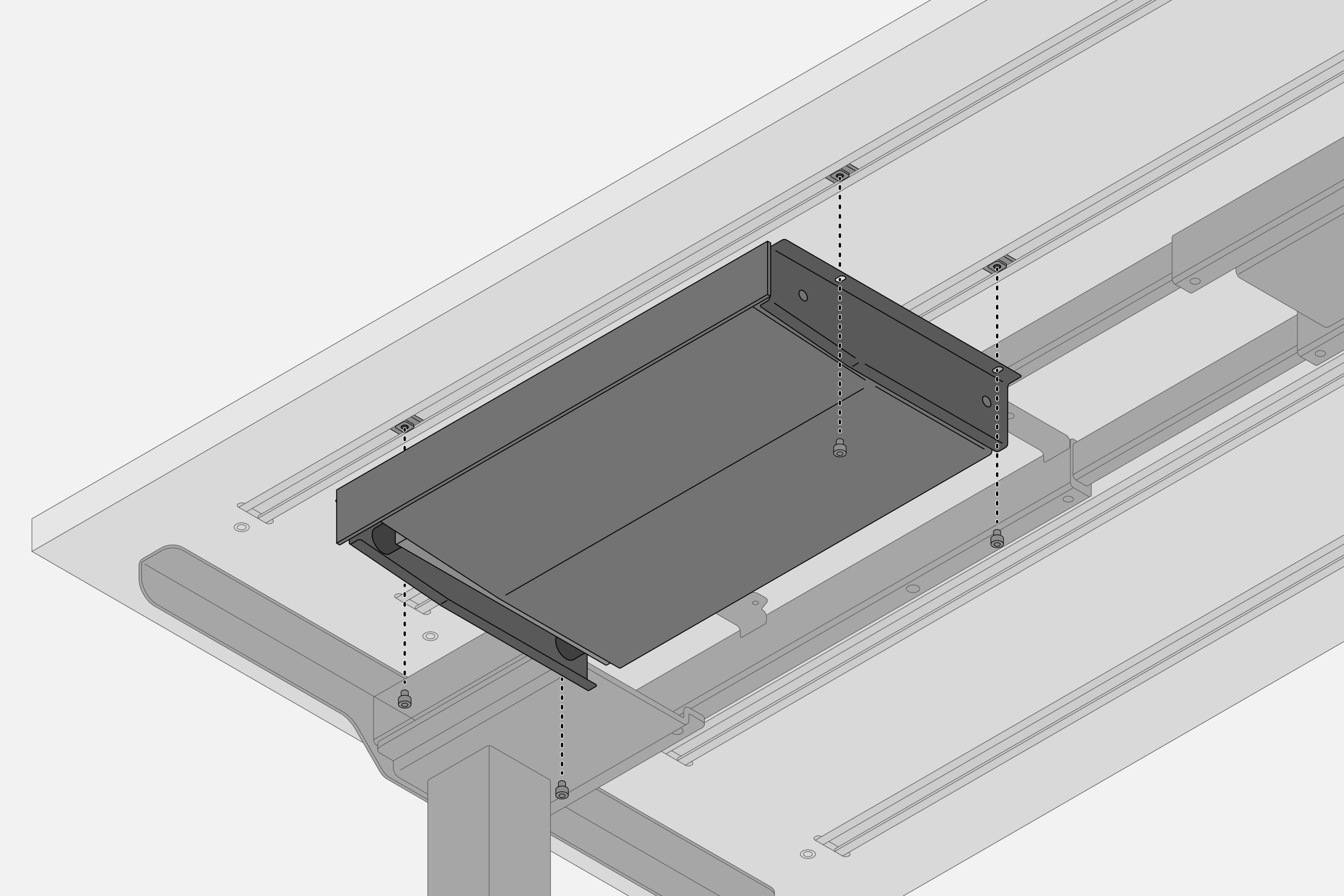 PREDUCTS DESKは「Desk Modular System」を備えたモジュール式拡張デスクです。 天板裏に埋め込んだ4本のレールにより、様々なモジュールが装着可能なDESK MODULAR SYSTEM。電源タップを固定しケーブルを這わせたり、トレイを装着してPCや書類が格納できます。(特許取得済)