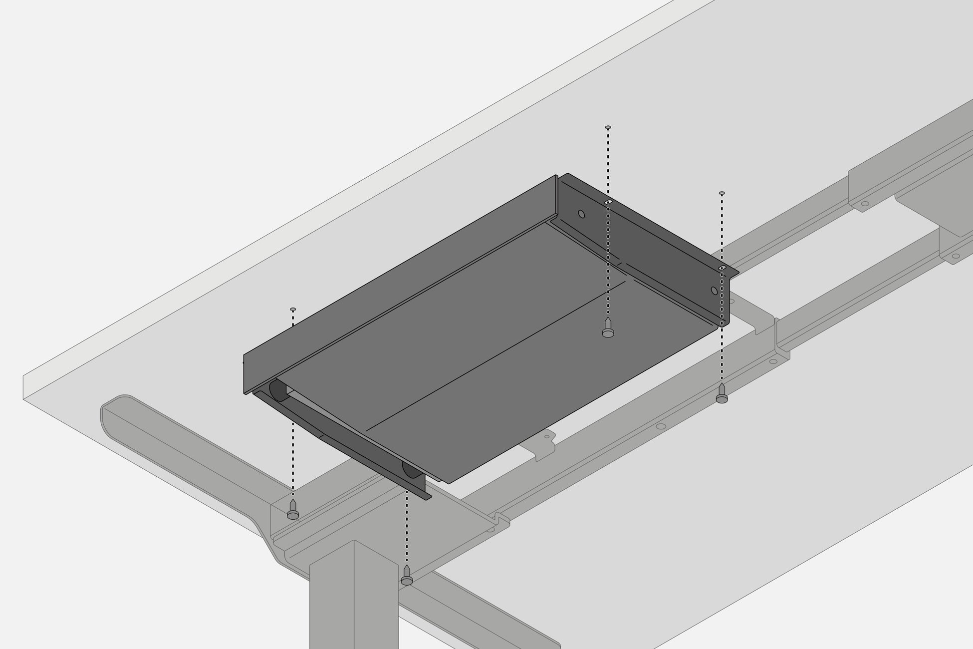 モジュール式拡張デスク「PREDUCTS DESK」の対応はもちろんのこと、付属の木ネジを使用すれば一般的なデスクの天板にも取り付け可能です。