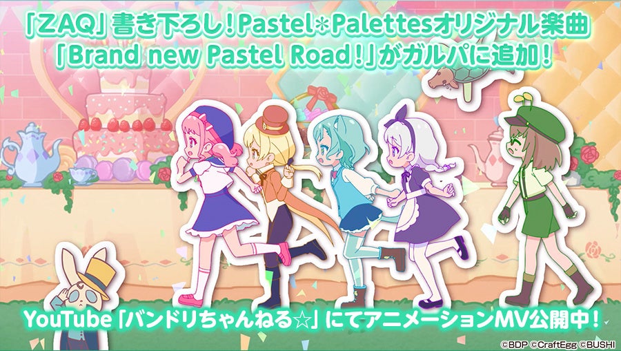 ZAQさんからPastel*Palettesへの提供楽曲『Brand new Pastel Road!』を本日ゲーム内に追加!アニメーションMV(フルサイズver.)をYouTubeで公開中!