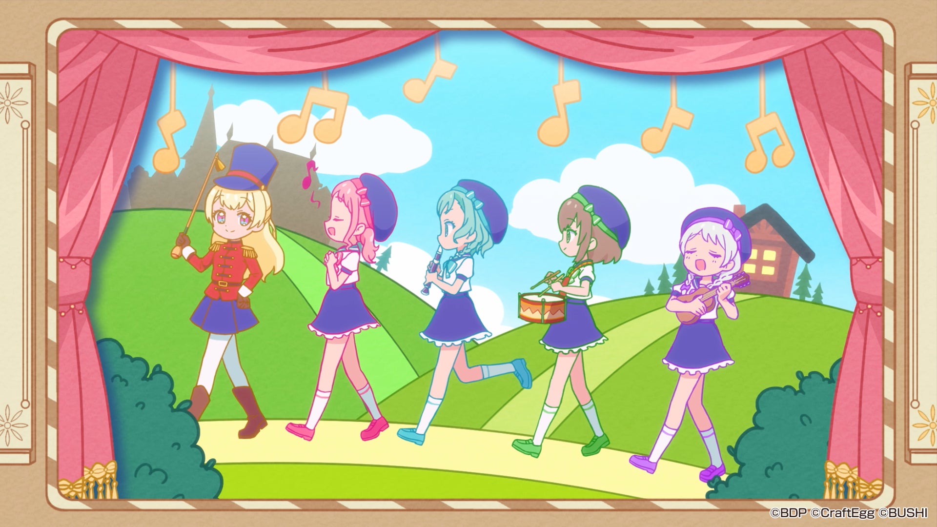 『Brand new Pastel Road!』を追加したことに伴い、本楽曲のアニメーションMVもゲーム内に追加いたしました。Pastel*Palettesメンバーの5人の絆を童話モチーフの世界観で表現した可愛らしいMVとなっております。また、キャラクターデザインも従来のものとは違った、楽曲をイメージした描き下ろしとなっております。