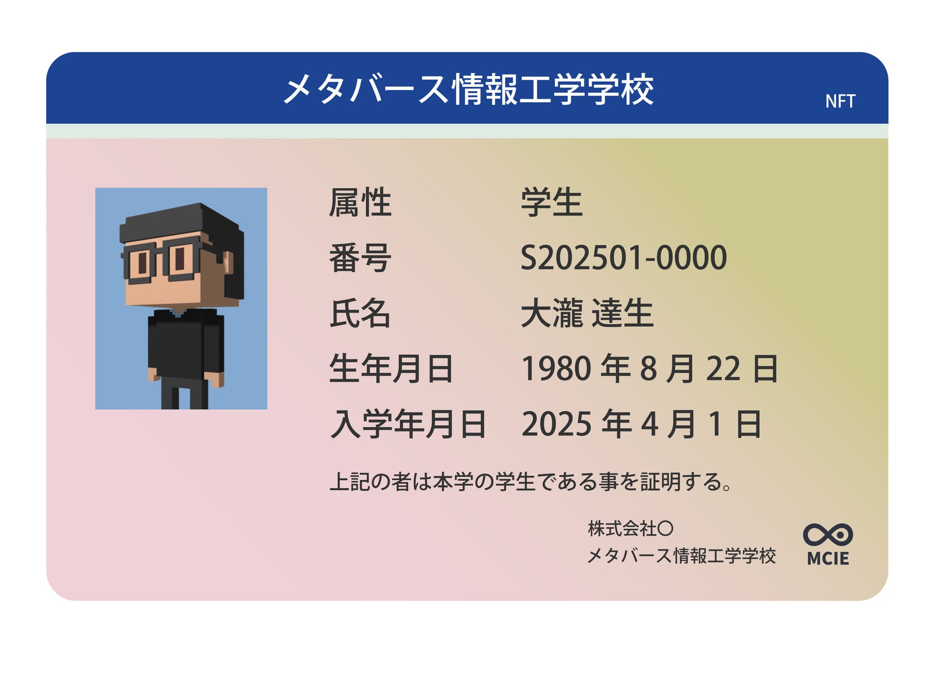 その学生証はNFTになっており、その学生証を持っていないと入れないメタバース上の部屋が存在しています。