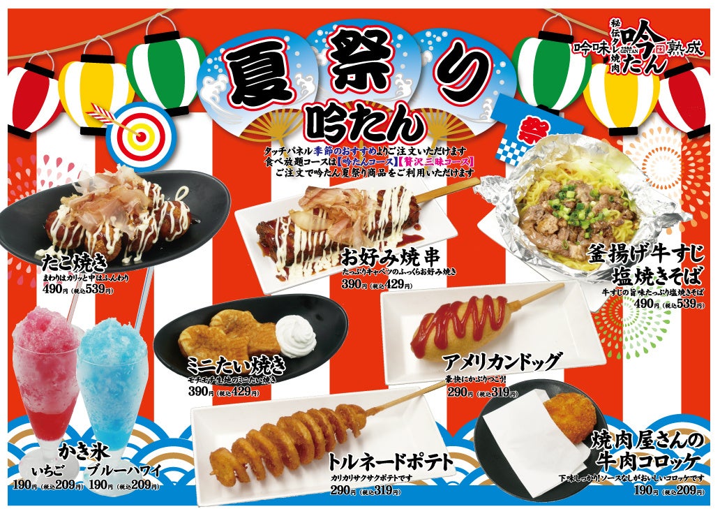 2023年夏メニューは、吟たん夏祭りと題してお祭りメニュー盛り沢山で登場です。
