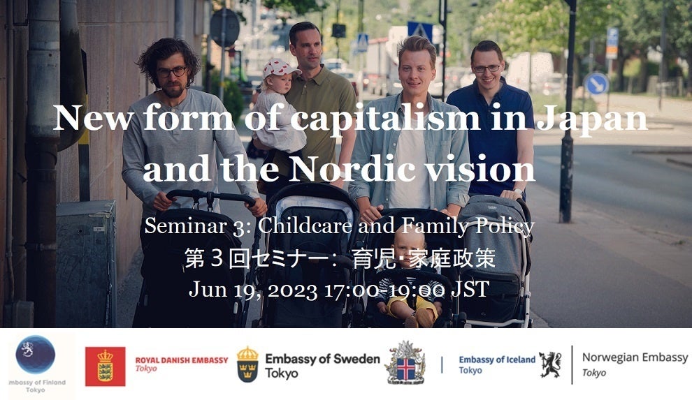 岸田政権の掲げる「新しい資本主義」は、北欧諸国が先行していると考えられている多くの分野において、広範な政策を実施することを目指しています。エネルギー、気候、人口動態など、北欧諸国も日本と同様の問題に直面しています。このセミナーシリーズ「日本における新しい資本主義と北欧の視点」の目的は、北欧がこれらの課題にどのように取り組んでいるかを紹介し、日本の有識者の方々との協力と対話をさらに促進することです。今回のシリーズ第3回では、 育児・家庭政策に焦点を当てます。