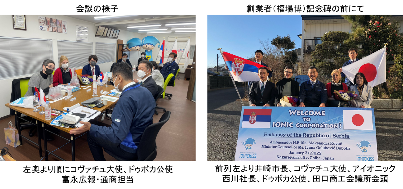 また、2018年1月より、セルビアを拠点にヨーロッパ21カ国に展開しており、さらに、先月31日には、セルビア共和国大使館より、アレクサンドラ・コヴァチュ特命全権大使、イヴァナ・ドゥボカ公使参事官、広報・通商担当富永正明様がアイオニック本社をご来訪されました。