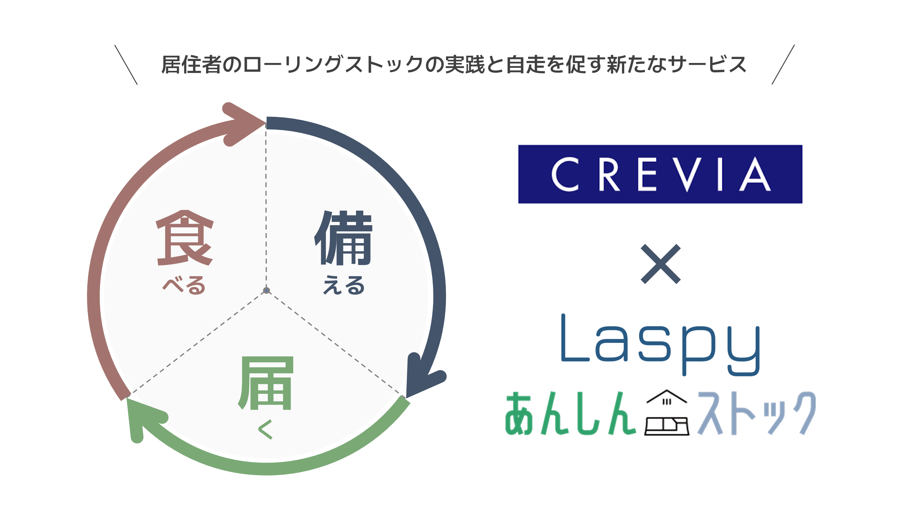 一方、Laspyは、「すべての人に安心と備えを」という企業理念のもと、お住まいのマンションや町内会の防災インフラとして、生活の中で意識せずとも備蓄に困らない社会の構築に向けて、日々活動を行っています。