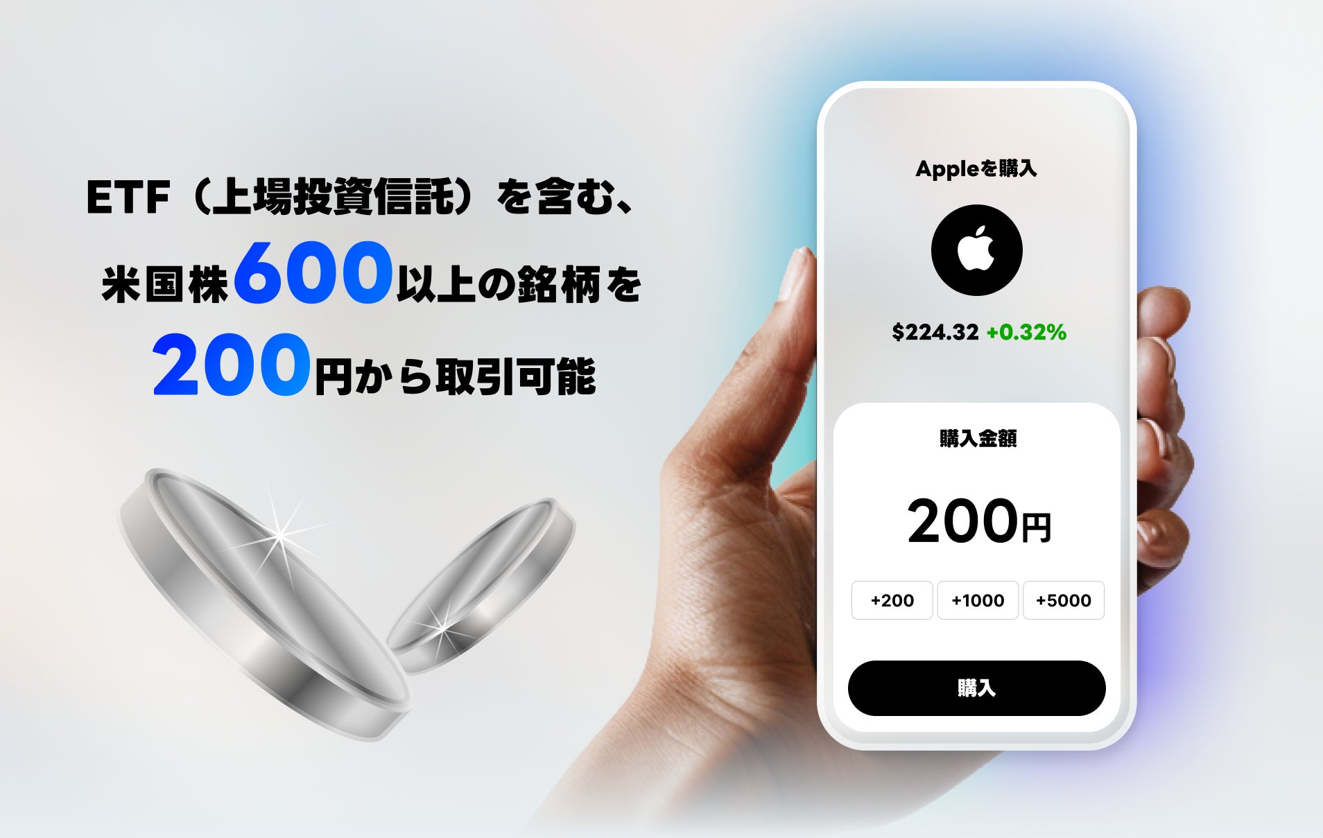 当サービスにおいては、これまでも約600の米国株やETFを日本円で1000円から気軽に購入いただくことが可能でしたが、この度最低購入金額を200円に引き下げ、より手軽に、より自由に株式投資の経験をしていただくことができるようになりました。口座開設された皆様には、1000円の投資金額を弊社から入金させていただいておりますので、口座開設をするだけで無償で最大5銘柄をポートフォリオとして作っていただくことができます。今後も、利用者の皆様が少額からでも簡単に運用ができるプラットフォームを提供すべく、サービスを提供して参ります。