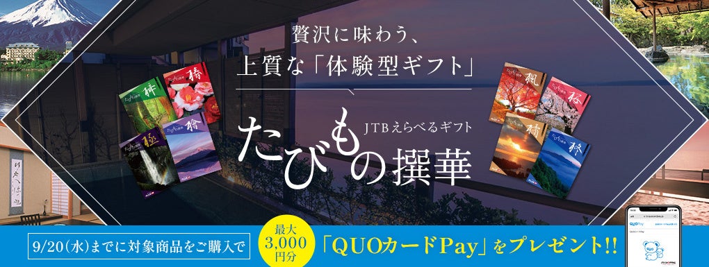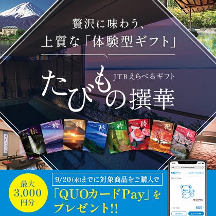 JTBグループが運営する「旅」をテーマにしたショッピングサイト「JTBショッピング」では、2023年8月9日(水)12:00 ~9月20日(水)の期間中に、対象の「たびもの撰華」をご注文頂き、9月30日(土)までのお届けが完了した方へ、もれなく「QUOカードPay」をプレゼントいたします。