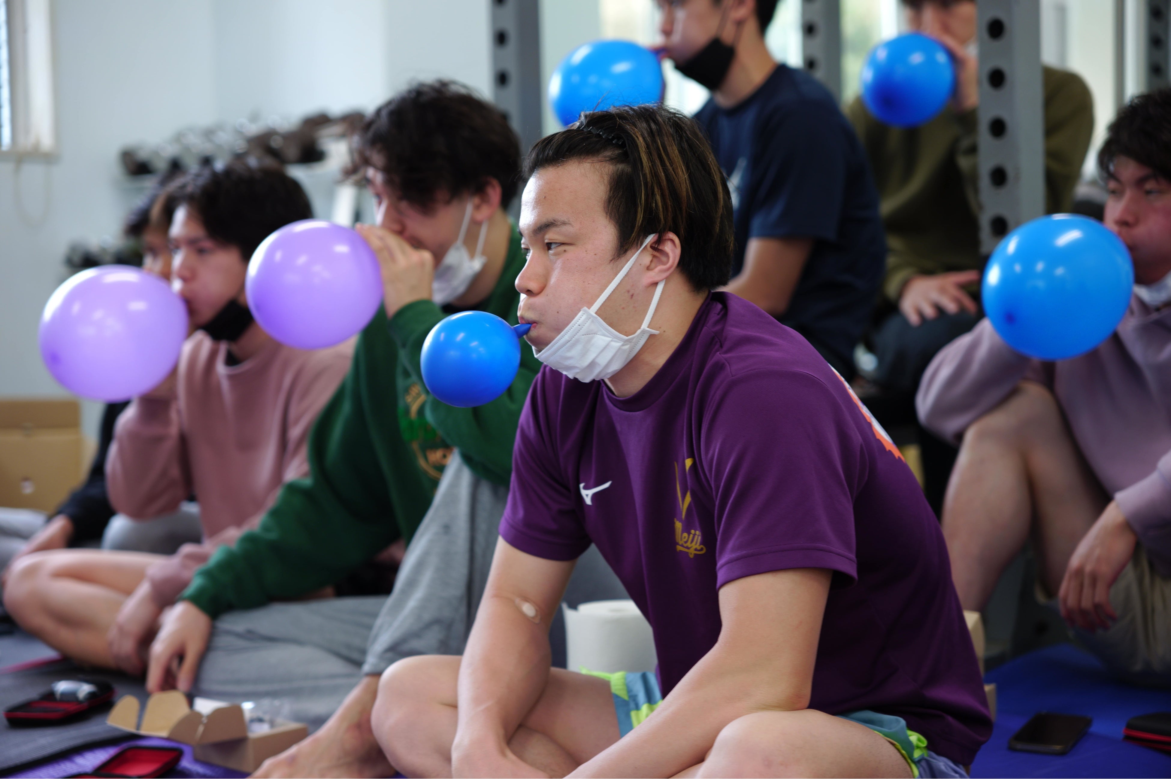当日は、4月に新しく入学した1年生を含む計13名の男子選手が参加し、呼吸筋に関する基礎講座から始まり、呼吸筋の基礎トレーニングやエアロフィットを使用した応用トレーニングをオンラインで行いました。