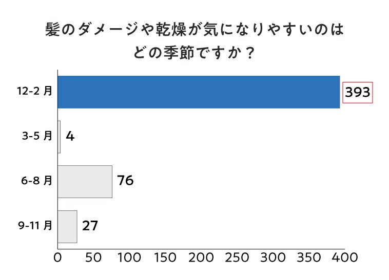 - 髪のダメージを感じている人は全体の約95%、その中でも特に気になる季節は冬