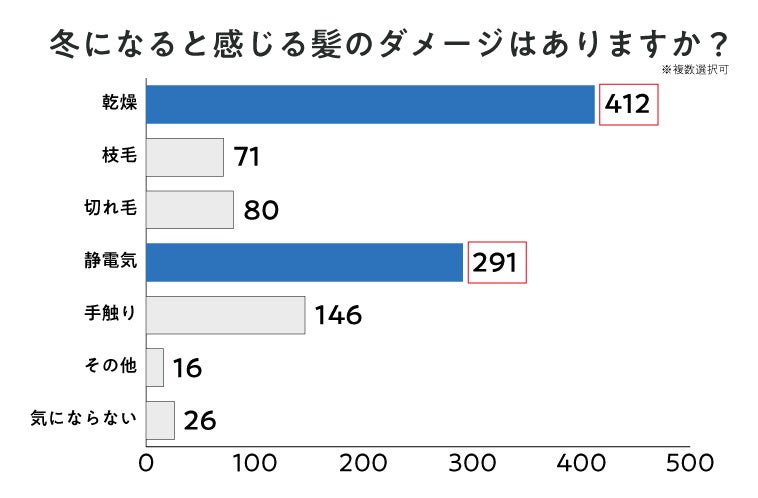 大気が乾燥することで体にも変化が表れる冬の季節。夏にかけて蓄積されたダメージが乾燥により一気に自覚する方も多いのではないでしょうか?髪の乾燥をはじめとする冬の髪トラブルについて500名の女性にアンケートを行いました。また、冬の季節にこそ使いたいアイテムやヘアケアについてご紹介します。