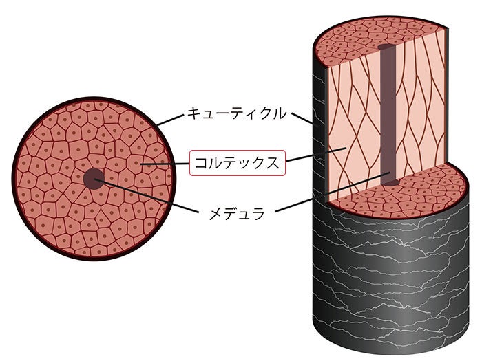 髪の変化はキューティクルがすべてのようなイメージがありますが、キューティクルが乱れることにより、その下にあるコルテックスに影響を与えてしまうんです。