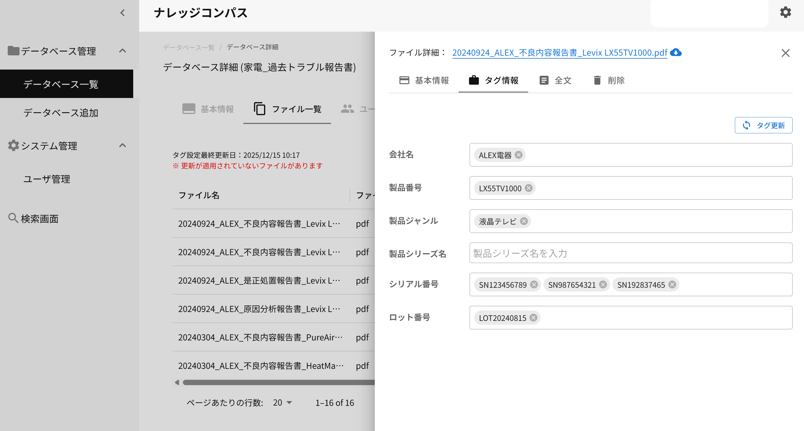 AIがドキュメントから「製品番号」や「シリアル番号」などの重要項目を自動で抽出・タグ付けし、これまで検索が困難だったデータに対しても、より正確な検索が可能になります。