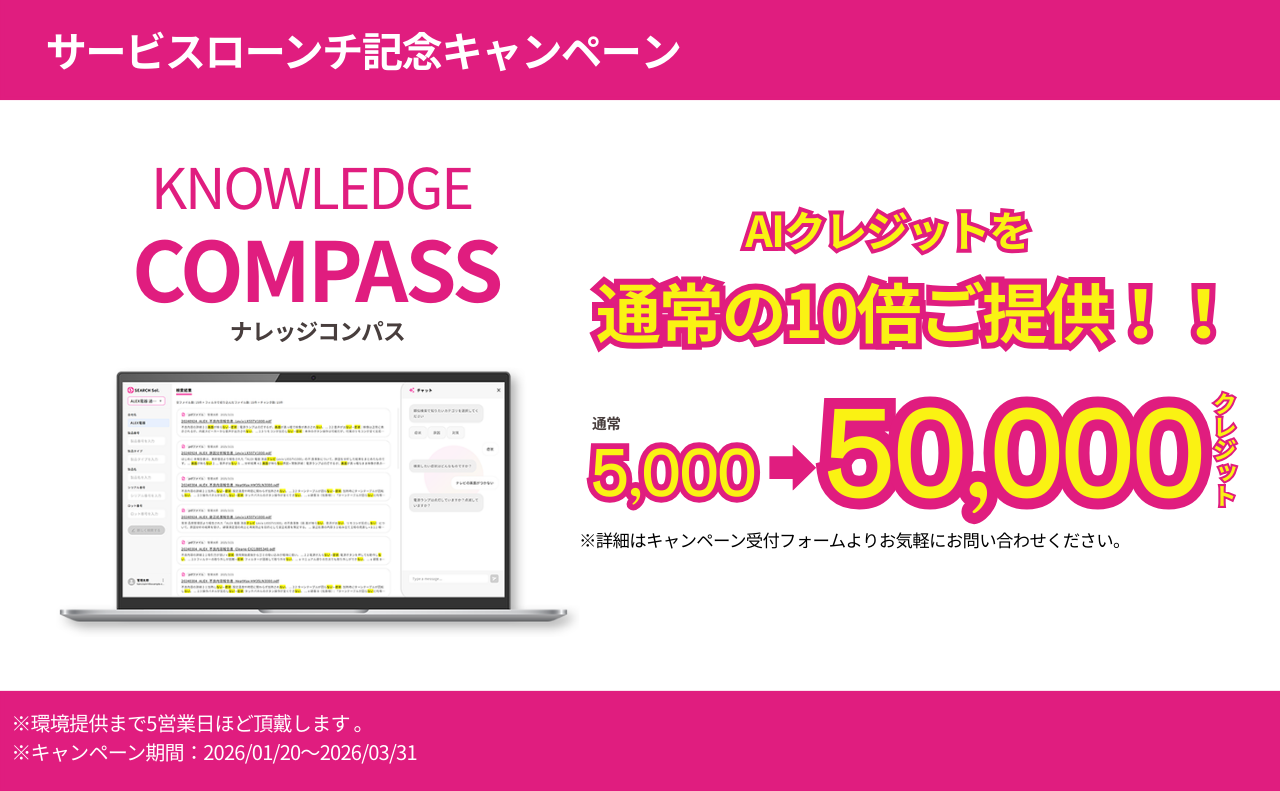 サービスローンチを記念して、お得なAIクレジット増量キャンペーンを開催します。