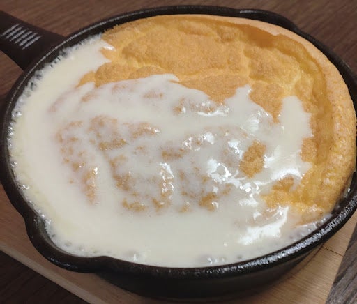ふわっふわで野菜たっぷりなオムレツをスキレットで焼き上げ、さらにパルミジャーノソースをかけてアツアツの状態でお召し上がりいただきます。
