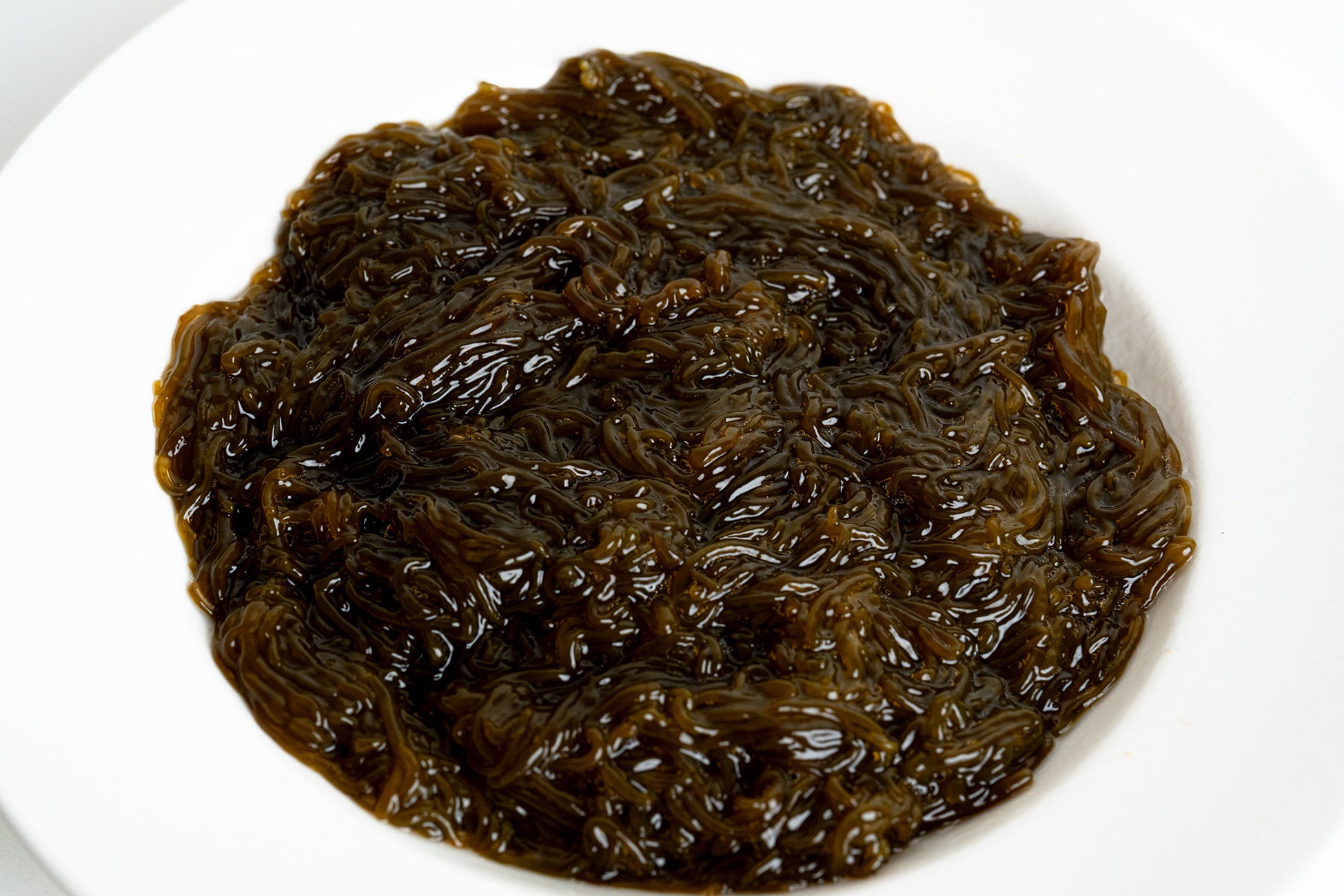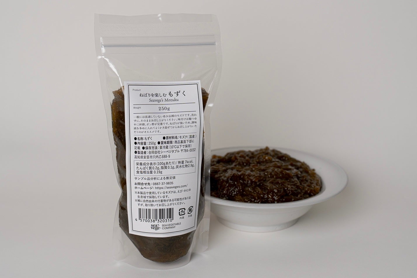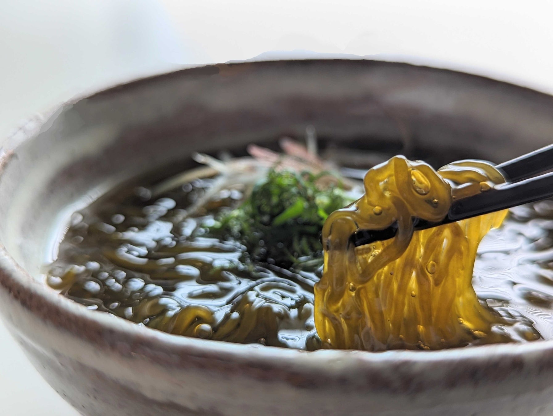 食べ応えのある粘りと口当たり滑らかな喉越しが特徴の、つゆごと絡めて食べる新食感モズク