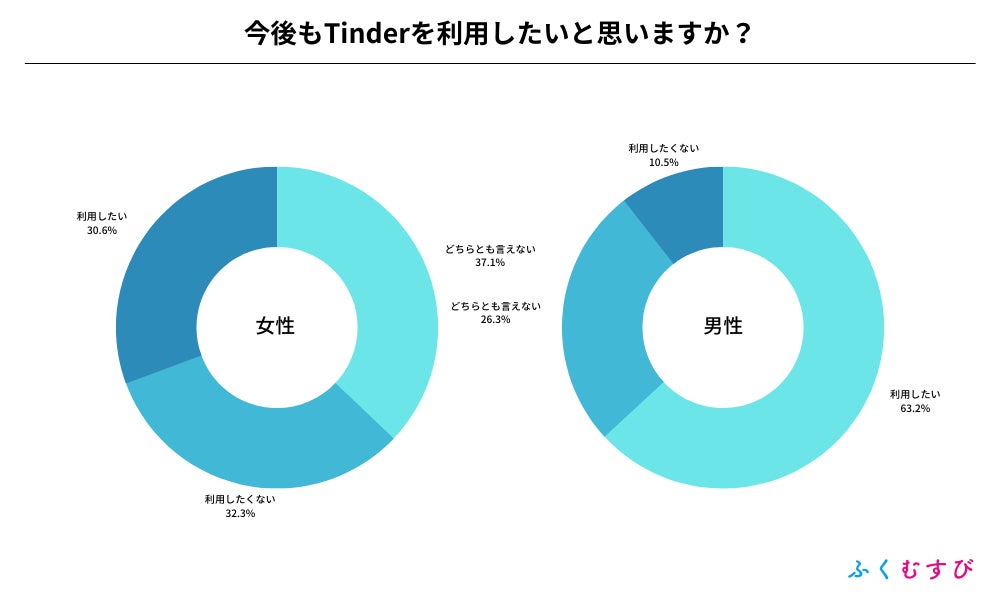 ・Tinderで異性と出会えた割合は、男性が65.8%、女性が64.5%となりました。