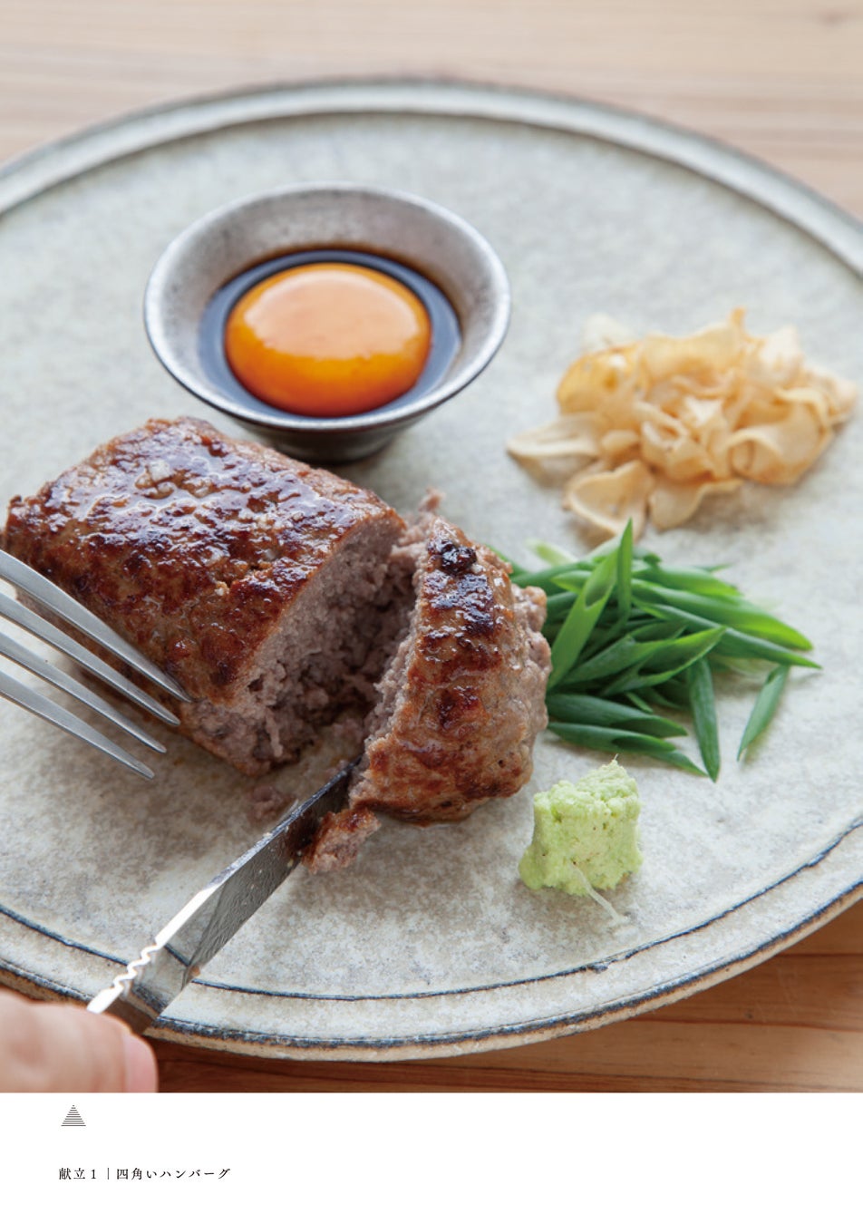 盛り付ける際には3角形を意識します。例えば和え物などは富士山を思わせる3角形で鉢にこんもりと盛る。洋食もパスタは山型に盛り付けたほうがおいしそうに見えますし、ハンバーグであれば皿の少し手前に盛り、その奥に付け合わせを置くのが基本です。