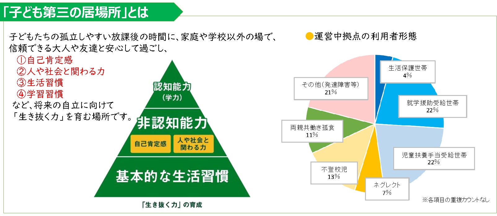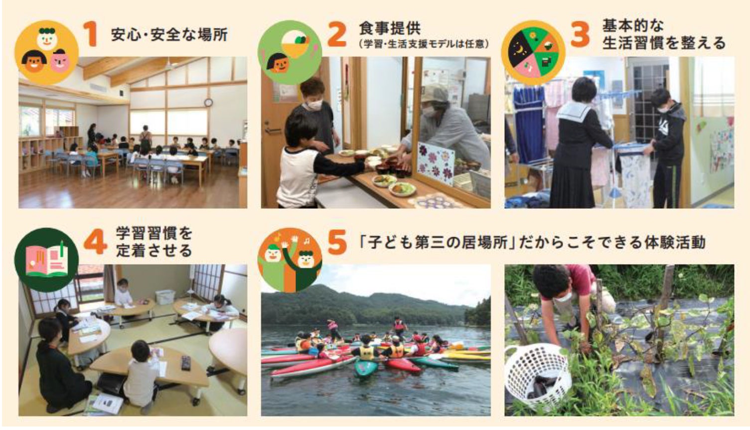 安心安全な居場所の提供、学習支援、生活支援、児童や家庭の状況の アセスメント など |