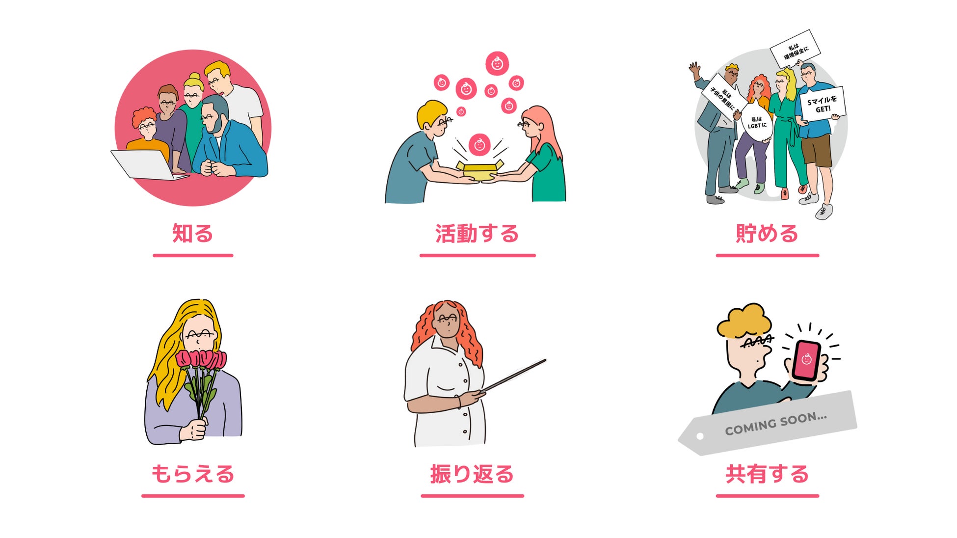 貯める: 活動に参加するたびに特別なマイル「Sマイル」が貯まり、社会貢献の足跡が可視化されます。