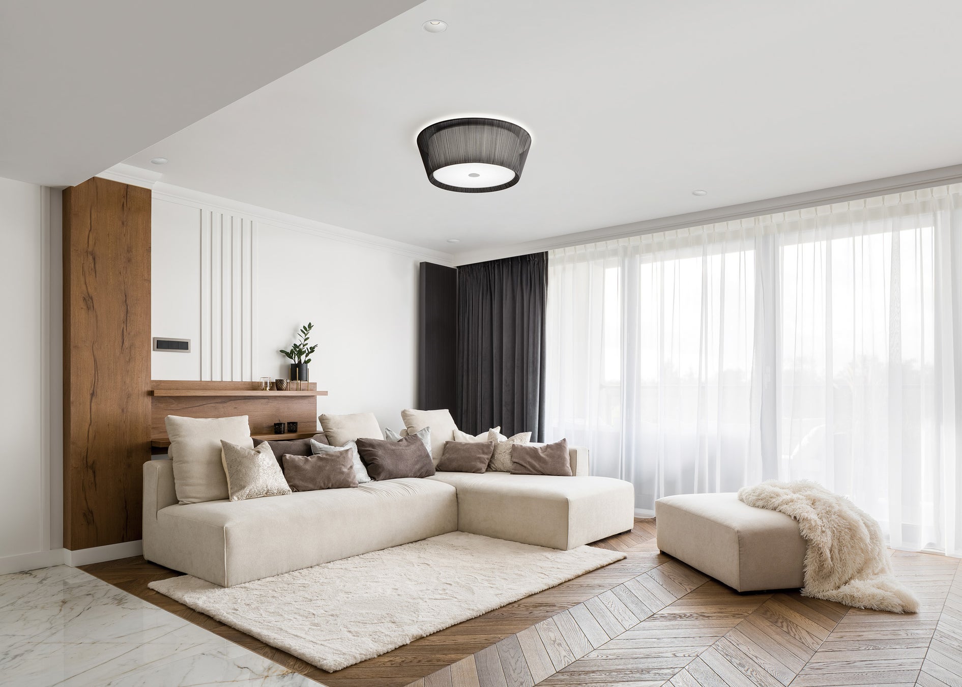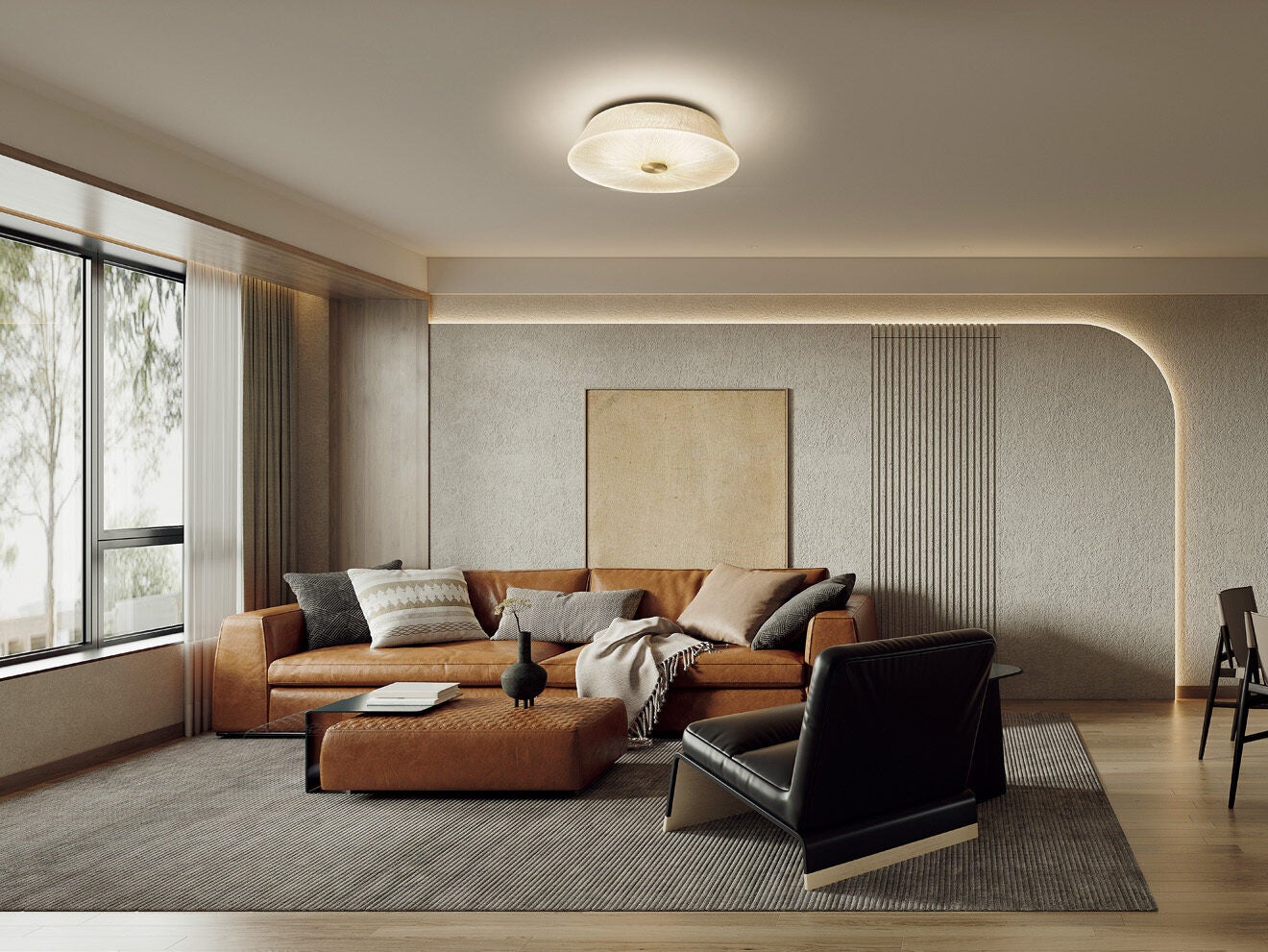 バウムⅡは、点灯するとプリーツが上品に透けるエレガントなデザインのシーリングライトです。リモコンによる調光や調色が可能で、時間帯やシーンに合わせお好みで調整することができます。