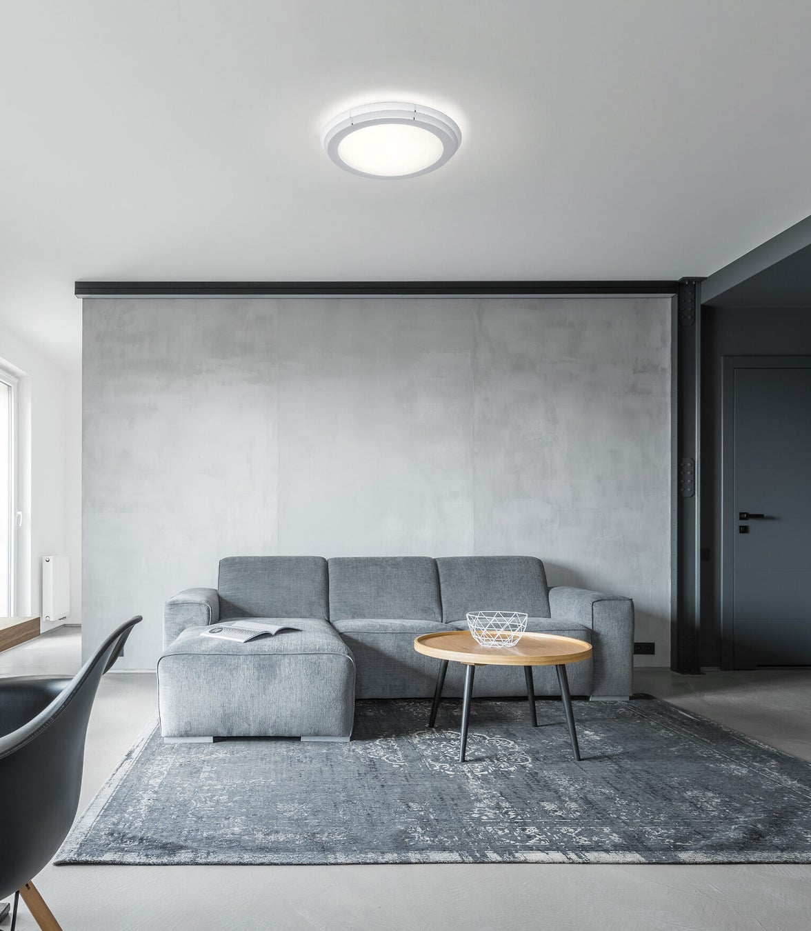 クロノスは、あかりを灯すと層になった金属製の環が光りを受け美しいグラデーションが浮かび上がる、彫刻的な造形のシーリングライトです。ドーム状のアクリルセードからのやわらなか光りと、環に反射する複雑な光が混和し空間を優しく包みます。