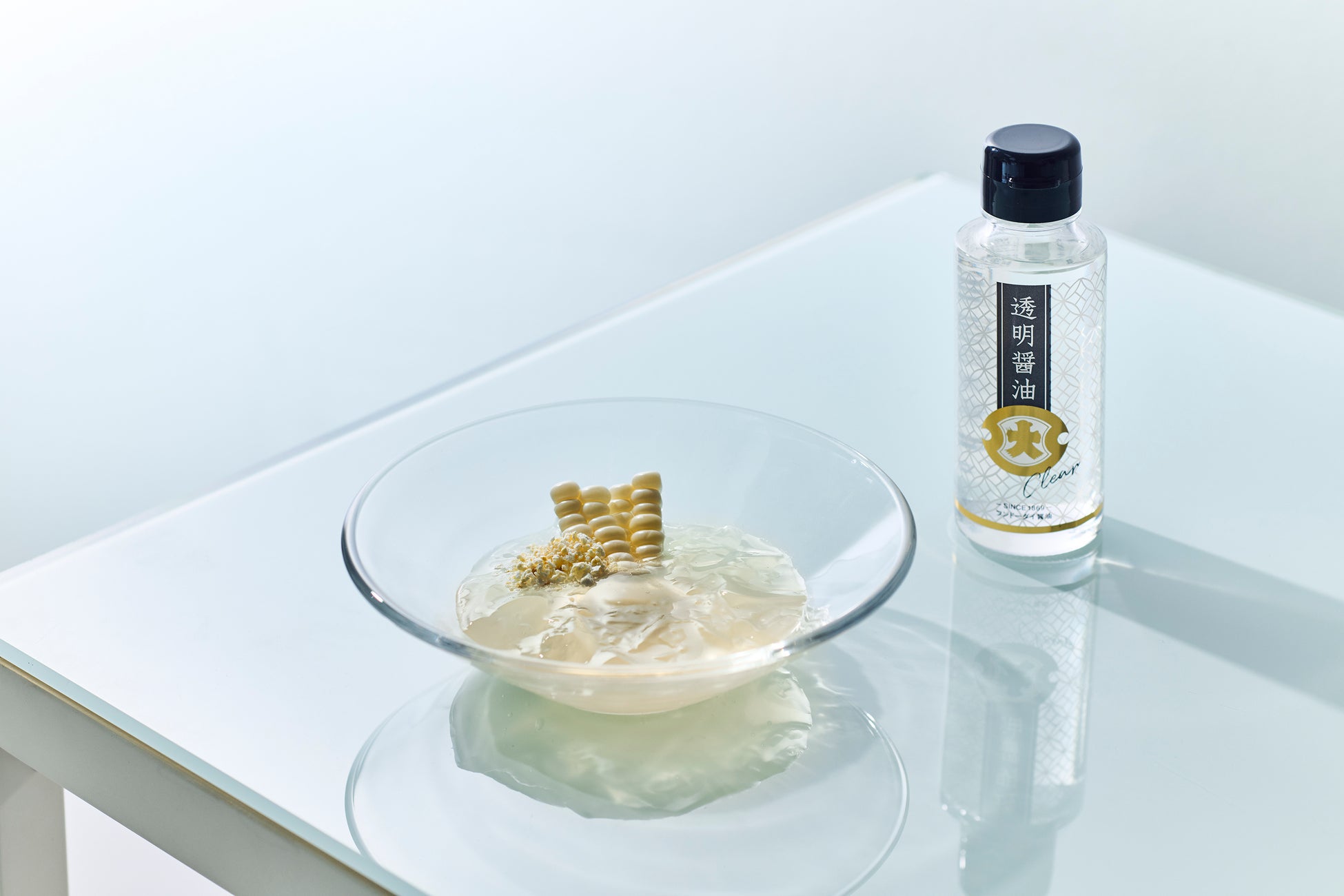 猛暑の今、涼やか!透明なのにすごくおいしい 透明プリン・コーンスープ・カルボナーラ・トマトのカプレーゼ!? 透明醤油の売上本数が前年度比 海外約2倍 国内1.5倍にアップ