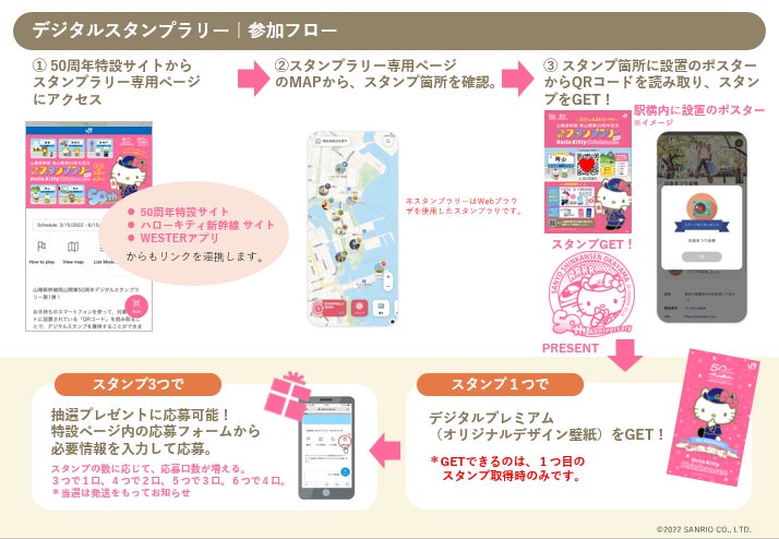 ・スタンプ3個以上:オリジナルキティグッズや50周年グッズなどを抽選でプレゼント