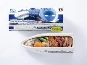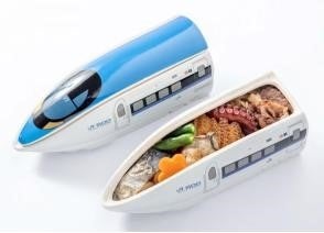山陽新幹線岡山開業50周年を記念したオリジナル500系新幹線弁当。陶器の器を使用し、中身は沿線各駅の名物料理を盛りつけた豪華なお弁当です。