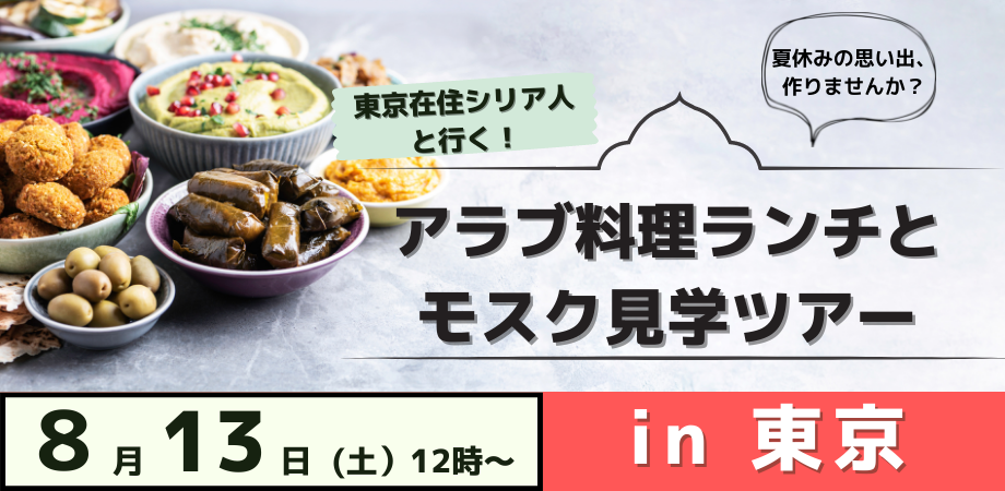 東京でアラブを体験!「シリア人と行く!アラブ料理ランチとモスク見学ツアー」を8/13に開催
