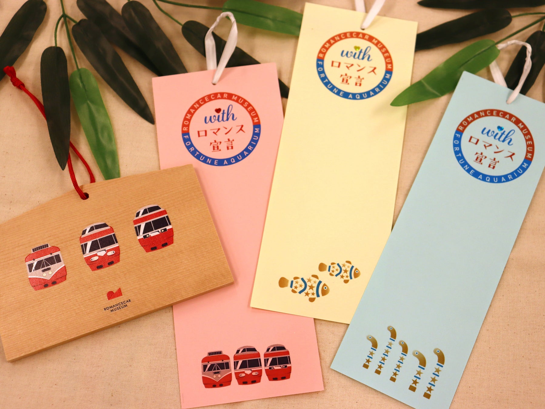 七夕期間の7月1日(月)~7日(日)は、缶バッジ制作を体験いただいた方、または当館のSNSフォロワーさま(ロマンスカーミュージアムで体験の場合はロマンスカーミュージアムのSNSのフォロワーさま)に「ロマンス短冊」をプレゼント!